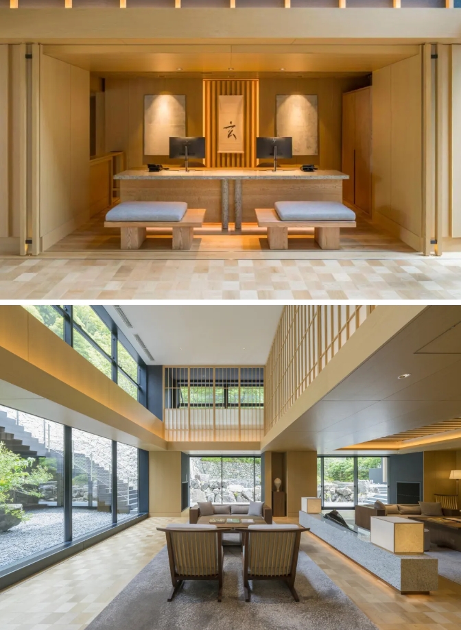 每间客房都强调“幽玄”(Yūgen)的理念,即一种神秘而宁静的美感。设计师通过低调的色调和细致的材质组合,营造出一种宁静、优雅的氛围,使得住客在进入房间的瞬间便能够感受到自然与文化的和谐共存。